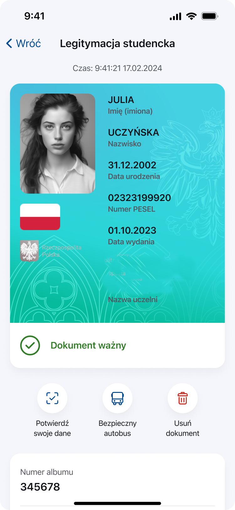 Drodzy studenci,wraz z nowym rokiem akademickim 2025/2026 uruchomiliśmy mLegitymację. Dostęp do legitymacji studenckaiej w wersji elektronicznej dostępny jest przez Wirtualną Uczelnię. Wystarczy tylko zalogować się na swoje konto, po czym wejść w zakładkę Wnioski i dalej mLegitymacja. Na stronie klikamy jedynie przycisk Złóż zamówienie, a po kilku minutach powinien wygenerować się kod QR wraz z hasłem.Do uruchomienie mLegitymacji potrzebna jest aplikacja rządowa mObywatel. Mając ją zainstalowaną na swoim prywatnym telefonie klikamy przycisk Dodaj dokument i z listy dostępnych dokumentów wybieramy Legitymacja studencka (na samym dole). Skanujemy kod widniejący w WU, wprowadzamy hasło i cieszymy się nową legitymacją!mLegitymacja studencja w wersji elektornicznej jest tak samo ważna jak używana przez Państwa wcześniej legitymacja tradycyjna. Nie musicie już Państwo przedłużać obecnych blankietów w swoich dziekanatach, jeśli dodaliście sobie ten dokument w mObywatelu.Uwaga! W nielicznych przypadkach może pojawić się błąd przy generowaniu kodu QR związany z Państwa zdjęciem w naszym systemie. Jeśli taka sytuacja wystąi prosimy o kontakt ze swoim dziekanatemStaramy się odejść od tradycyjnej formy legitymacji, dlatego gorąco zachęcamy Państwa do korzystania z jej nowej elektronicznej wersji